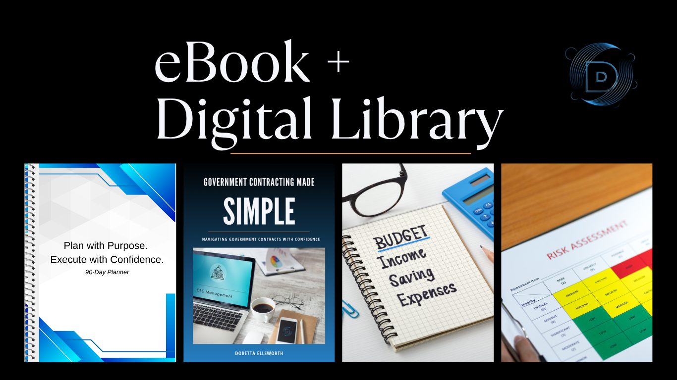 Includes our eBook: Government Contracting Made Simple plus 10 essential time-saving tools to help you stay organized, get prepared, and execute your goals with excellence!